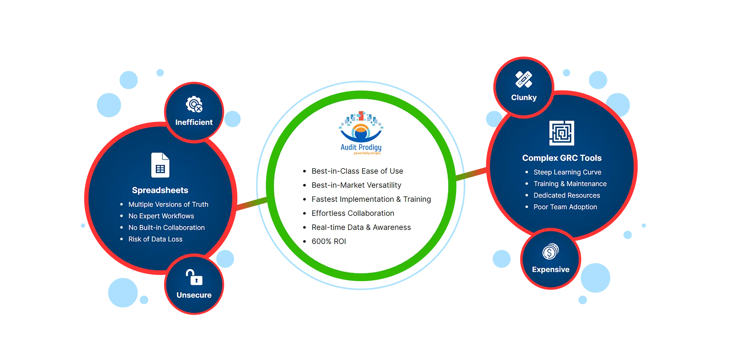 Ease-of-use of spreadsheets and integrated capabilities of major GRC platforms. Explains why teams get comfortable and productive, quickly and with little training.